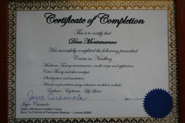 Hello, I’m Dina, owner and operator of Hello Gorgeous Permanent Makeup since 2013 and loving every minute of it! Welcome to my website. I am a certified and insured permanent makeup technician specializing in the most current state-of-the-art techniques, the most popular for eyebrows is called microblading. This technique creates the most beautiful and natural realistic looking brows! I'm also highly skilled and very experienced in the use of precision equipment for the application of eyeliner, lip blush and even beauty marks! I am also a licensed cosmetologist for over 30 years. I've worked as a stylist and also was the manager of JCPenny Styling Salon. In addition, I was an educator for the Paul Mitchell Hair Care company which included demonstrating and teaching at beauty/hair shows and Salons around the country. As for permanent makeup, I studied at Boca Ta-2 Academy in Williston Florida for permanent makeup and corrective cosmetic tattooing along with additional classes at The Beau Institute for Permanent Makeup at Mt. Laurel, NJ. Using the latest techniques, state-of-the-art equipment and pigments. Also, I've attended training workshops by Erica Blasko, Lulu Siciliano and Olena Oliynyk perfecting the art of achieving beautiful eyeliner and luscious Lips with minimal swelling, absolutely stunning!